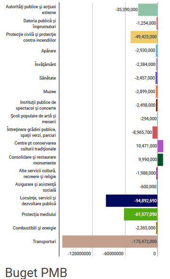 Alte 41.358.160 lei, ce reprezintă aproape întreaga sumă ce se taie de la protecţia mediului, se vor scădea din cadrul unor proiecte destinate managementului deşeurilor, unor sistem de drenare şi canalizare sau finalizării unor staţii de epurare, inclusiv Glina. În aceeaşi notă, la rubrica combustibili şi energie, din suma totală ce se scade la rectificare, 1.700.000 lei reprezintă bani destinaţi modernizării reţelelor termice primare zona Blvd Liviu Rebreanu-Blvd 1 Decembrie. La transporturi, rubrica unde PMB taie cel mai mult, se vor tăia sume importante de bani de la obiective de investiţii menite să decongestioneze traficul. Traseele pentru biciclişti vor ajunge de la 3.500.000 lei la doar 100.000 lei şi ne putem lua gândul de la ele, pentru că din păcate, bicicliştii şi pietonii sunt “cantitate neglijabilă”. Alte 2.000.000 lei vor fi scăzute de la obiectivul de investiţiei Parcaje subterane şi supraterane, 7.000.000 lei de la modernizarea Pieţei Revoluţiei şi pasaj pietonal, 35.000.000 lei de la penetraţia Splaiul Independenţei-Ciurel-Autostrada 1, 38.349.000 lei de la reabilitarea sistemului rutier şi linii de tramvai Şoseaua Pantelimon, 4.900.000 de la penetraţia Prelungirea Ghencea-Domneşti.