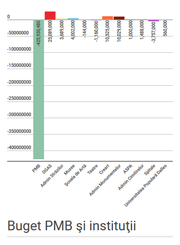 Precum menţionam anterior, dintre instituţii, cele mai masive tăieri sunt la PMB. Alte tăieri mai sunt la teatre, din care cel mai mult, -3.216.000 lei la Teatrul Mic, în timp ce la Odeon se adaugă 1.040.000 lei, la Ţăndărică 994.000 lei, iar la Teatrul Dramaturgilor 22.000 lei. Se vor mai scădea bani şi de la Şcoala de Artă, cu -144.000 lei dar şi de la Spitale, -3,757.000 lei. Se adaugă în schimb, nu mai puţin de 25.089.000 lei, la Direcţia Generală de Asistenţă Socială. Toată această sumă, alături de alte 3,527,000 lei economisiţi din alte rectificări interne, se alocă intergral la ajutoare sociale.