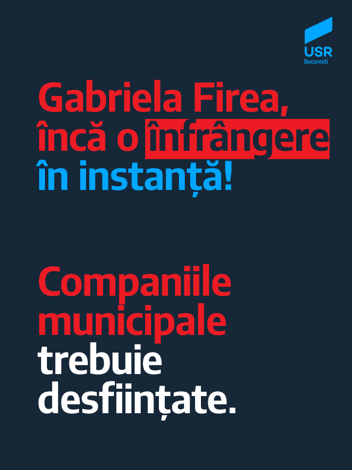 ”Gabriela Firea încearcă să amâne inevitabilul, și anume desființarea companiilor și demararea procedurilor pentru recuperarea banilor. Iar explicația acestei atitudini este foarte simplă. Atunci când se va vedea că în conturile companiilor nu mai este niciun ban, bucureștenii vor cere, pe bună dreptate, ca banii să fie recuperați de la cei care au susținut înființarea companiilor. Mai pe scurt, Gabriela Firea știe că e bună de plată. Așa că încearcă să scape. Însă, așa cum o dovedește și această decizie a Curții de Apel București, nu va scăpa. Aceste companii vor fi desființate, iar vinovații vor plăti”, a declarat Roxana Wring, președinte USR București și consilier municipal.