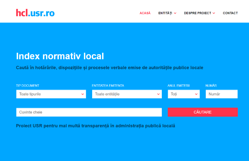 USR pune la dispoziția cetățenilor primul index normativ local din România. Acesta se găsește pe hcl.usr.ro și conține într-un format accesibil documente oficiale relevante emise de autoritățile administrației publice locale.